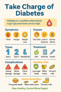 ડાયાબિટીસનું નિદાન થવાનો અર્થ એ નથી કે તમે સામાન્ય જીવન જીવી શકતા નથી. યોગ્ય જાણકારી, સ્વ-કાળજી, નિયમિત તબીબી દેખરેખ અને સકારાત્મક અભિગમ સાથે, તમે ડાયાબિટીસને સારી રીતે સંચાલિત કરી શકો છો અને એક લાંબુ, સ્વસ્થ અને સક્રિય જીવન જીવી શકો છો. તમારા ડોક્ટર અને ડાયેટિશિયનની સલાહને અનુસરો અને તમારી સંભાળમાં સક્રિય ભાગીદાર બન